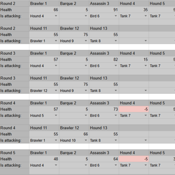 For Barque of Ra I created a Balancing Sheet, which could simulate combat in pure numbers. I made this simulation of combat to quickly test out the impact of changes in each value & to a clearer view on which unit may be over- / under powered.